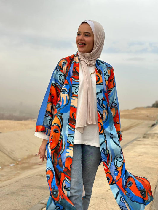 Satin Faces long Cardigan