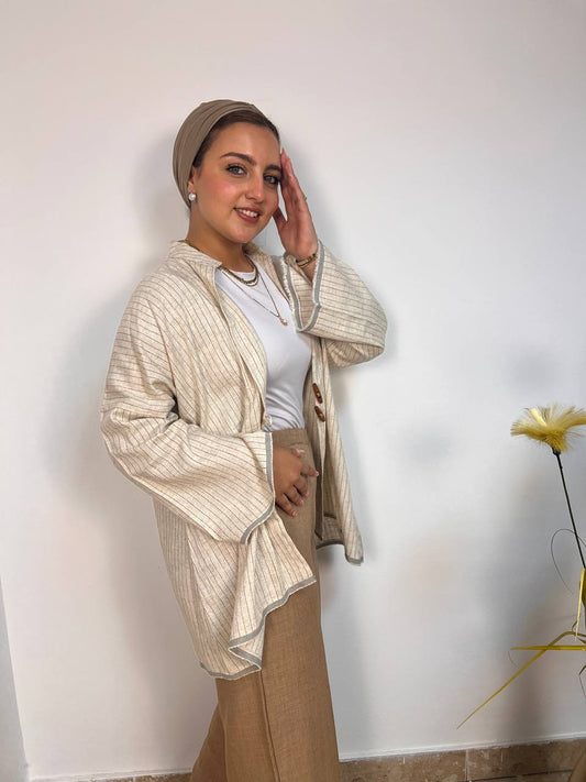 Stripped Linen Cardigan